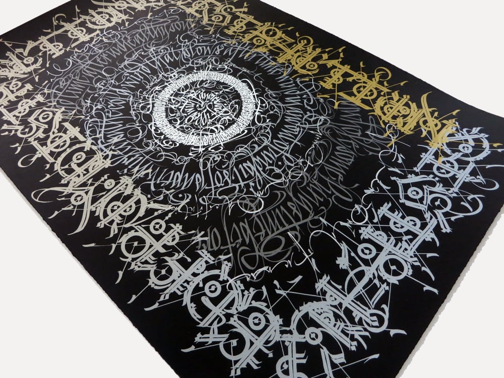 About the artist: Tarek Benaoum (www.tarekbenaoum.com, Facebook) is an artist from the Paris, France who combines the art of Calligraphy with Graffiti in uniquely visual manners. He explores transforming simple text and phrases into works of free-flowing art.